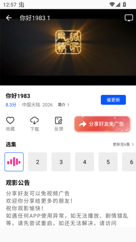 6、投屏功能:支持投屏操作,用户可以将剧集内容投屏到电视等大屏设备上观看。