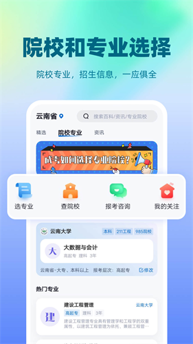 院校专业招生信息,一应俱全,帮你找到心仪的专业。