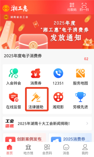 湘工惠app官方正版是一款由湖南省总工会开发的综合服务平台,该软件中是有很多的功能使用,为各级工会提供服务号开设,活动管理,服务推荐,资讯发布等功能,为工会会员提供入会转会,法律服务,困难帮扶申请,在线支付、消费券使用、商品团购,活动参与等服务功能。平台将不断进行迭代,逐步丰富功能模块,为各级工会和广大会员提供更多服务,除了支持工会管理功能,还提供个性化的服务推荐和资讯发布,促进会员与工会之间的互动,无论是生活中水电费用的缴纳,还是各种工会活动等等,都是能够直接使用手机在线上获取相当的信息,还是相当靠谱的,有需要的小伙伴们快来下载体验吧。