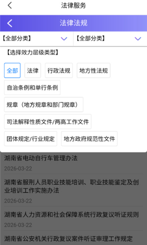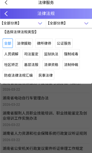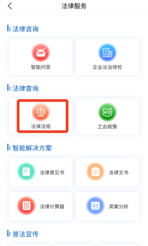 2、这里有很多关于法律方面你的功能,点击【法律法规】。