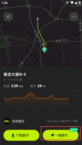 3、在路书详情页,点击右下角的 "一键骑行" 按钮。