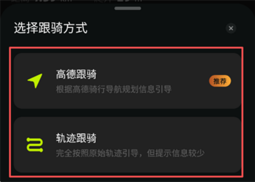 高德跟骑:推荐选项,基于高德骑行导航规划信息引导,提示更全面。