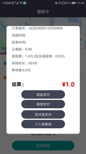 4、顾客可通过扫描司机端二维码快速生成代驾服务单。扫码后自动填充司机信息与计费标准,经确认后立即开启本次服务。