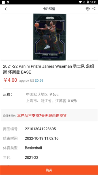 提供了全方位覆盖的比赛收藏球星卡,方便用户可以便捷的评级拍卖。