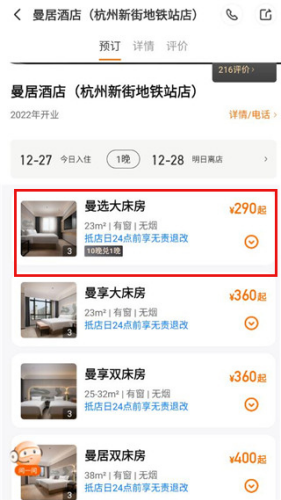 4、最后选择是大单间还是双人间点击预定即可。