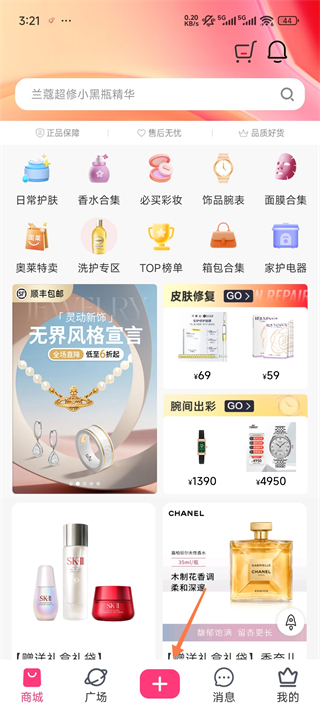 1、打开美哩App商城板块可以购买物品,点击下方的【+号】