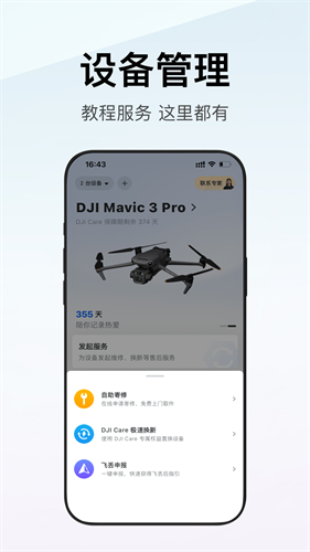 1、记录陪伴,查看设备使用时间和 DJI Care 剩余天数。