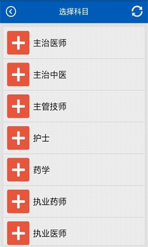 2、点击选择科目,查看主治医师、护士、药学、执业医师等分类。