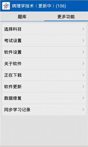 6、点击更多功能,有考试设置、软件设置、正在下载、同步学习记录等。