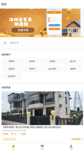 2、来到主页之后,大家可以在这里选择城市,查看各种优质房源。