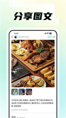 4、支持用户通过图文、视频等多种形式分享生活瞬间、创意灵感等内容,且提供丰富的编辑功能,让动态更具个性。