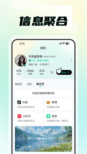 6、聚合页功能可整合用户在其他平台的链接,实现一键跳转,方便管理网络身份及让好友全面了解自己。