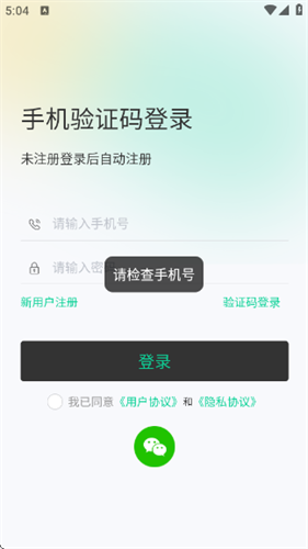 3、可以直接填写手机号,通过验证码登录,没注册的会自动注册。