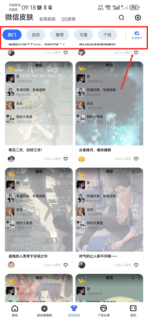 4、你可以根据分类挑选喜欢的壁纸,也可以点击本地图片自己制作壁纸