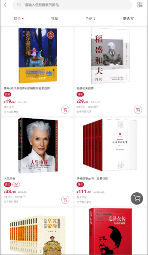 2、可以按销量、价格、上架时间、出版时间的条件快速筛选商品。