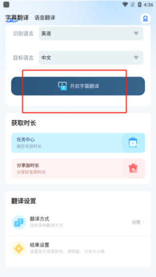 3、然后选择识别语言以及翻译目标语言,点击开启字幕翻译即可。