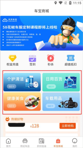 4、打开车宝商城,可以购买日用百货和软件联名产品;