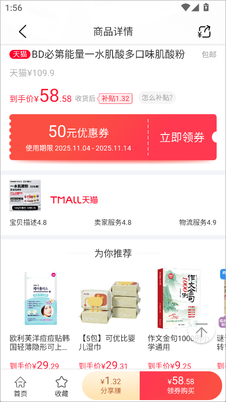 5、这里有非常多的优惠券,各种商品的优惠券更新速度都很快,你随时可以来领取。