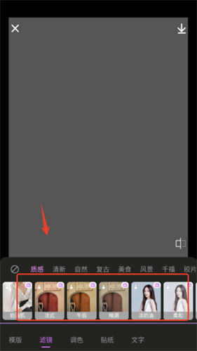2、在工具栏里找到美颜、滤镜和贴纸选项,逐一尝试适合的风格。滑动调节强度,避免效果过重,保持图片自然美观。