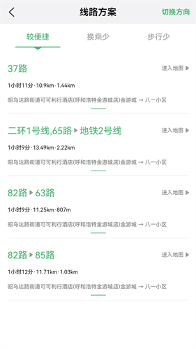 3、智能路线规划功能,支持公交换乘方案及步行导航一键生成。