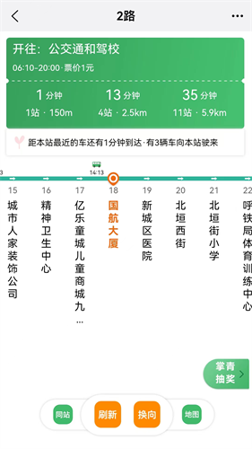输入查询的站点名称搜索后,可显示经过该站点的所有线路。