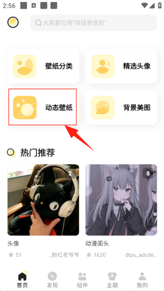 1、进入APP后点击首页上方的“动态壁纸”栏目。