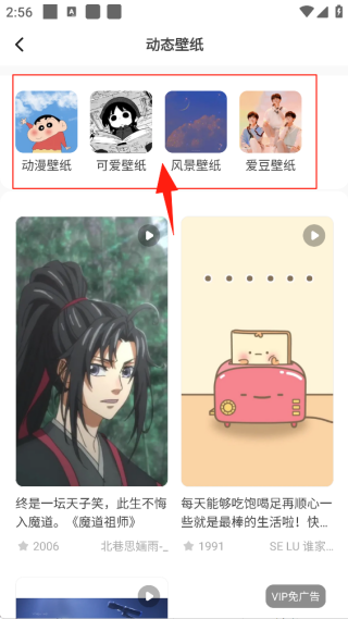 2、根据上方的壁纸分类来挑选你想要的类别。