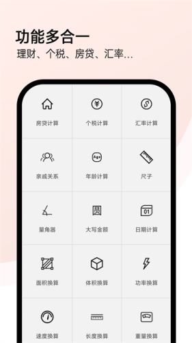 全能计算机app安卓版2025是一款集各种计算功能为一体的手机计算器app,各种计算单位十分齐全,还能够为你生活中的各种计算环境带来帮助,轻松解决各种计算、换算的需求,为你的生活带来极大的便利,满足不同用户的计算需求,它还支持各种汇率换算,使用起来十分的专业好用,含日常的生活计算器,包含收支计算、个税计算器、房贷计算器lpr计算、BMI计算器、生命时长、亲戚称呼、日期间隔,还有生活中的测量工具。软件还汇聚房贷计算、汇率转换、理财计算、大写金额、个税计算等实用的功能,一定是你日常生活上的好帮手。