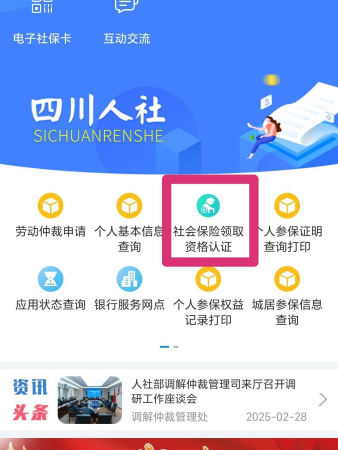 1、在本站下载好四川人社app之后,打开登录软件,点击“社会保险领取资格认证”