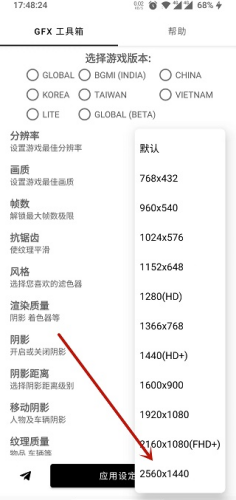 1、想要使用用gfx工具箱官方正版来提高pubg、地铁逃生画质的话,大家需要先在主页的顶端点击选择不同的版本,其中包括有国际服、国服、韩服和台服等八个版本,在选择后就能对画质进行自定义修改了。