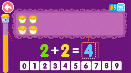 5、每计算正确一题加减法的算式,就能获得一枚小金币,攒够金币,就能在【宝宝学加减法】中,定制自己喜欢的新道具啦。