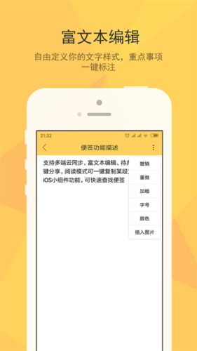 3、支持富文本编辑,自定义文本样式,各种重要事情能够进行一键标注。