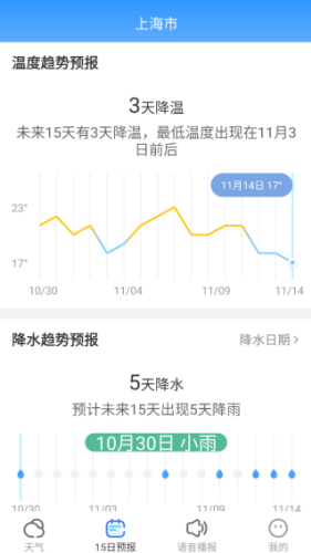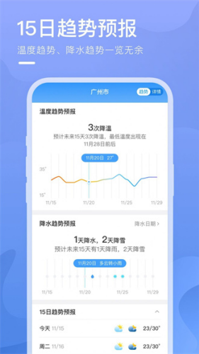2、提供15日预报功能,大家能了解未来天气温度趋势。