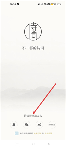 3、进入登录选择界面,可选择QQ、微信、微博、快快查等登录方式,勾选同意使用协议及隐私政策后即可进行登录操作。