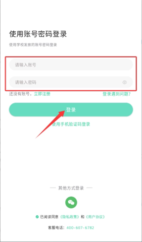3、在登录页面输入学校发放的账号与密码,即可完成账号登录流程。