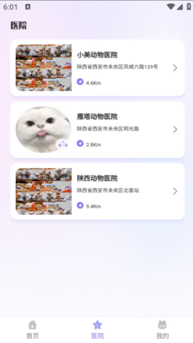2、在医院板块,能帮助大家找到附近最近的宠物医院,很方便。