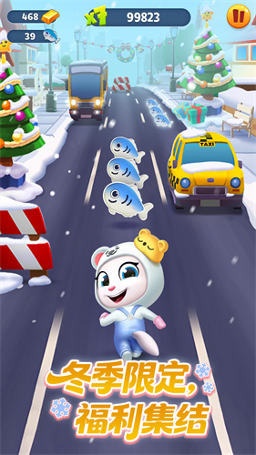 2、让会说话的汤姆或会说话的安吉拉追强盗,夺回你的金子!不断发现新场景,体验不同跑酷风格。