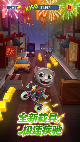 汤姆猫跑酷破解版无限金币钻石鞭炮2026游戏亮点: