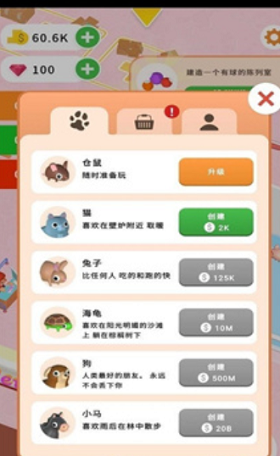 放置宠物破解版一个玩法十分简单的休闲益智放置类游戏,不断的赚钱扩大自己的店面,让每一个玩家一只手都可以轻松操作,放置的养成更加休闲也更加有乐趣,打造品味最独特的时髦小宠物,看到各种各样非常可爱的小狗,游戏的界面设计的非常漂亮,抽空上线给每一个宠物补充食物。
