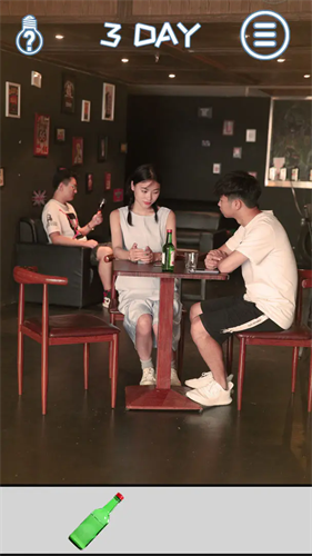 1、先点击坐在沙发上的男人,然后点击桌子上的酒瓶。