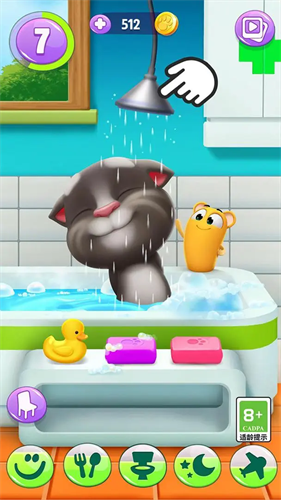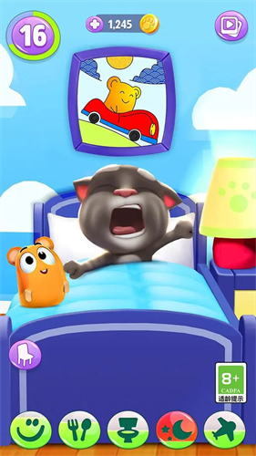 2、养育你专属的汤姆:和他玩游戏,喂他最喜欢的食物,带他上床睡觉。