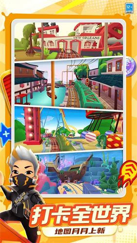 地铁跑酷每一个版本都会带你观赏一个城市的风采,全世界所有城市,在游戏中都有可能遇见,特色的地铁、特色的城市美景,在你眼中大方光彩,以最绚烂最美丽的一面刻印在你的脑海中!