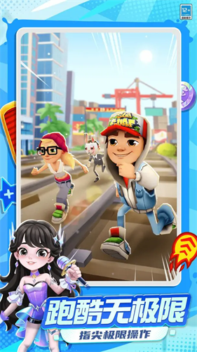 地铁跑酷破解版无限皮肤无限滑板是一款经典的休闲跑酷游戏,游戏里玩家可以控制各种各样有趣的角色在不同场景下奔跑,一路上翻越各种障碍,同时在穿梭的火车之间获取金币和各种额外奖励,将那位铁路管理员狠狠地甩在后头,让自己的角色不会被他和他的狗抓住。游戏采用了3D美式漫画的画面风格,加上轻松简单的操作方式,让玩家可以尽情地体验游戏乐趣。游戏里不仅仅是有简单的跑酷挑战,还有其他有趣的娱乐模式,而且游戏里有着各种各样的道具和外形酷炫的滑板让玩家可以体验另类跑酷魅力,非常好玩,喜欢的小伙伴快来下载体验吧。