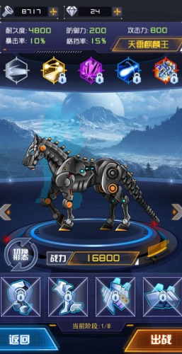 4、每个机甲战士都有不同的属性,选择本人钟意的战甲,便当你用心培育和改造。