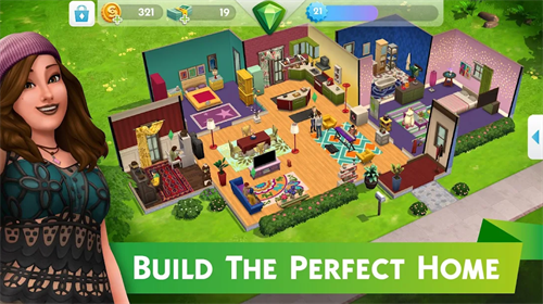 • 设计你理想中的家园,或者直接让你的模拟人物住进配置齐全的房子。