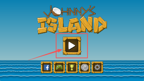 1、看游戏启动页,点蓝天下带椰子图案界面里红框白三角播放键开始,底部有社交设置等图标。