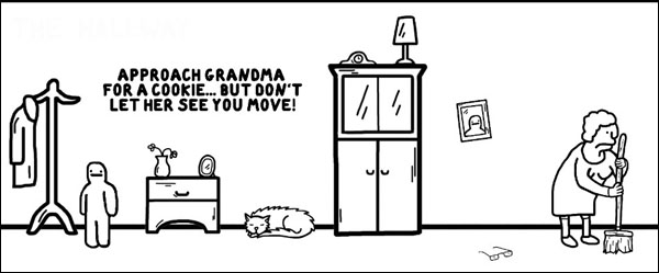 2、独创三轴警戒系统,奶奶视线范围随时间扩大,需利用家具遮挡制造安全移动窗口。