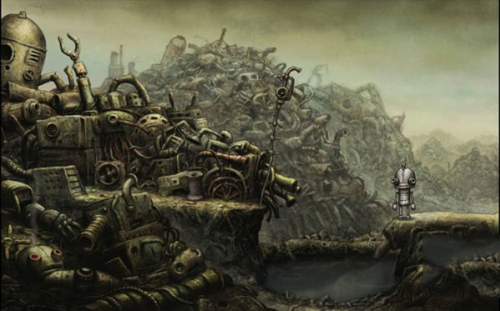 2、没有多余的对白,游戏情节和线索皆靠细腻的动画来表现。细腻的手绘水墨风格打造后现代机械场景画面。