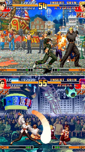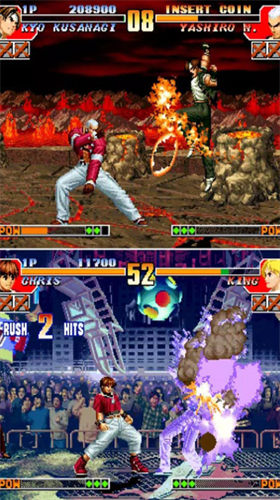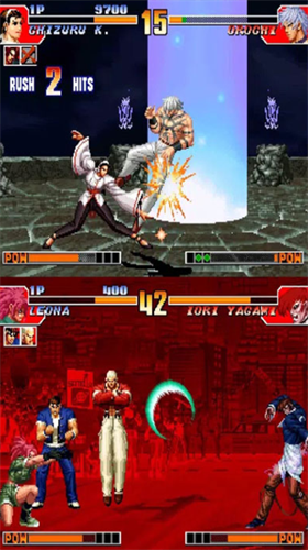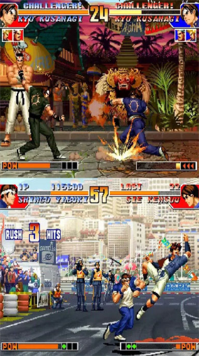 拳皇97风云再起破解版无限大招版是一款手机端的经典街机格斗类手游。拳皇是1994年日本SNK公司旗下在MVS游戏机板上发售的一款著名对战型格斗街机游戏,简称"KOF",拳皇97是在于1997年发行的,相较于拳皇前三个版本在各方面都有较大改进,是拳皇系列成熟之作,相信在座的各位小伙伴,小时候肯定都有去过游戏厅玩过,而作为当时最火爆的一款游戏,想玩到它都是要在游戏厅里排队的。尽管可能要冒着被家长抓到的风险,但依旧乐此不疲。而拳皇97风云再起是拳皇97的修改版,在同年发行。现也成功移植到安卓平台上此版本可单人游戏也可利用蓝牙功能双人对战。在人物的选择上大蛇、暴走八神、暴走莉安娜、干枯大地之七枷社、炎之克里斯、荒狂稻光之夏尔米这六位隐藏人物(大蛇在八神庵和矢吹真吾两位人物中间可选择)。速度要比原版的拳皇97快得多,攻击力也比原版的强。看着草雉京,八神庵,大蛇是不是感觉青春又回来了呢。