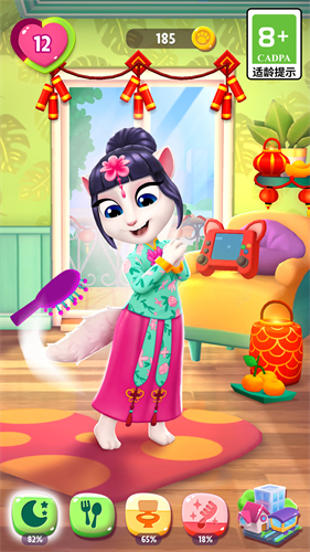 2、把她的家装饰的漂漂亮亮,很多家具可以选择,还有别忘了喂她好吃的。同属于汤姆猫系列,在这款游戏中,玩家可以养成一只非常可爱的安吉拉